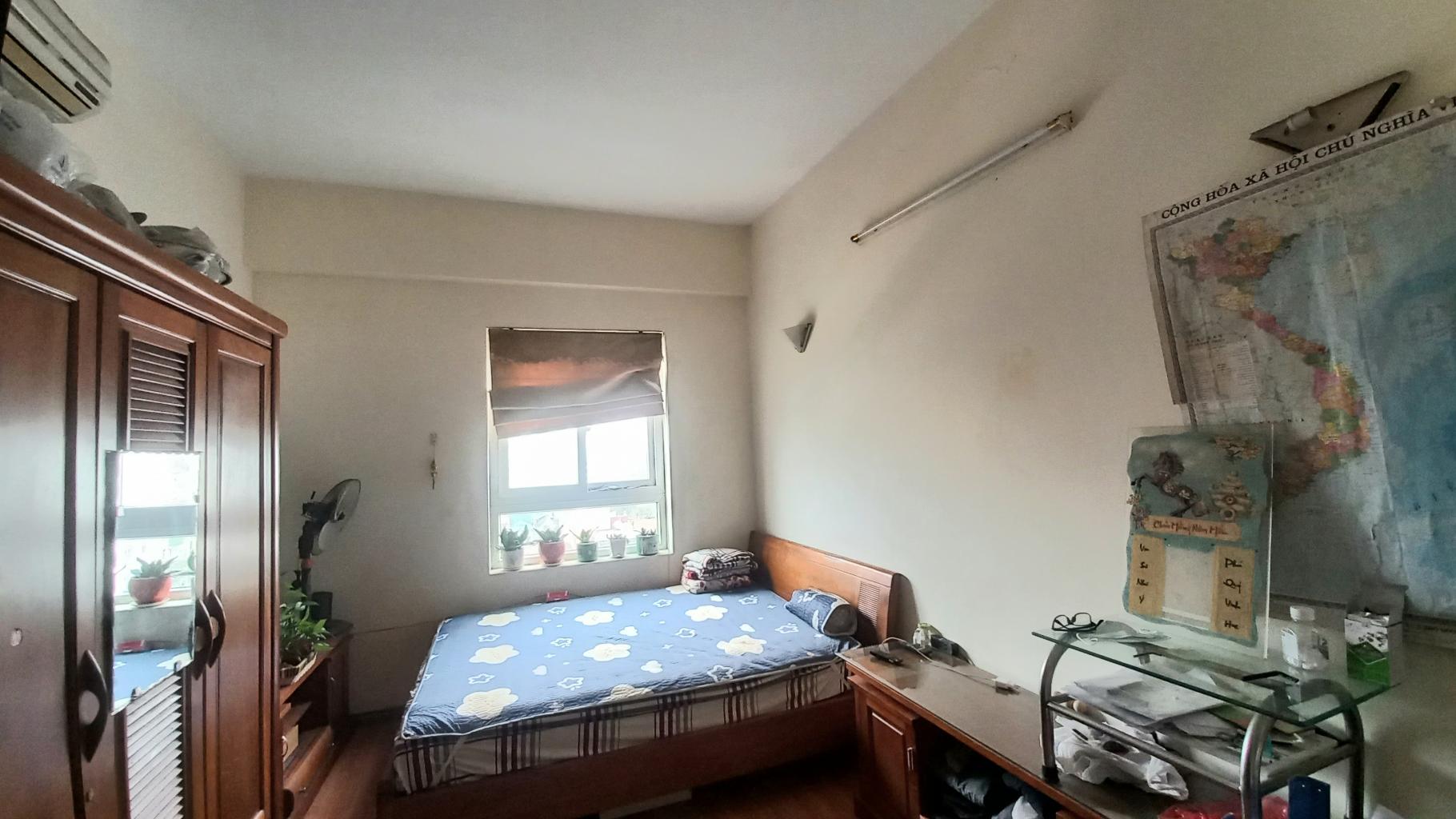 Thiết kế: 3 phòng ngủ, 2 vệ sinh có 1 vệ sinh khép kín, 1 ban công hướng Đông Bắc, cửa hướng Tây Nam. Đầy đủ nội thất, toàn gỗ thịt xịn, sẵn về ở luôn. Phí dịch vụ 3k/m2, vé xe máy 45k/tháng, vé ô tô 900k/tháng.
