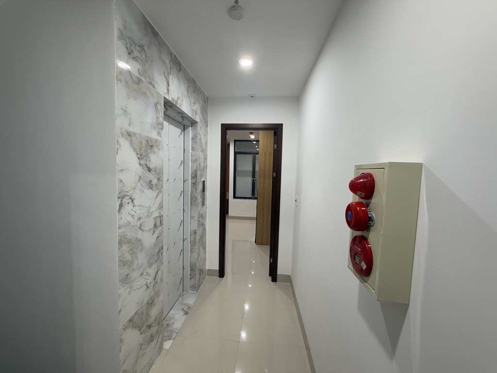 + Cầu thang bộ và thang máy ở giữa; thang thoát hiểm phía phía trước nhà.