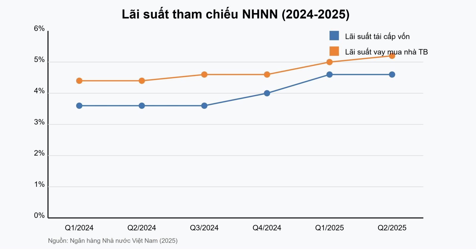 Thị trường vay mua nhà năm 2025 đang chịu tác động từ ba yếu tố chính: chính sách tiền tệ của Ngân hàng Nhà nước Việt Nam (NHNN), diễn biến lạm phát và cán cân cung-cầu trên thị trường bất động sản. NHNN đã điều chỉnh lãi suất tái cấp vốn từ mức 4,5% cuối năm 2024 lên 5,0% vào đầu năm 2025, phản ánh xu hướng thắt chặt tiền tệ nhằm kiểm soát lạm phát đang ở mức 4,2% (tăng so với mức 3,6% năm 2024).