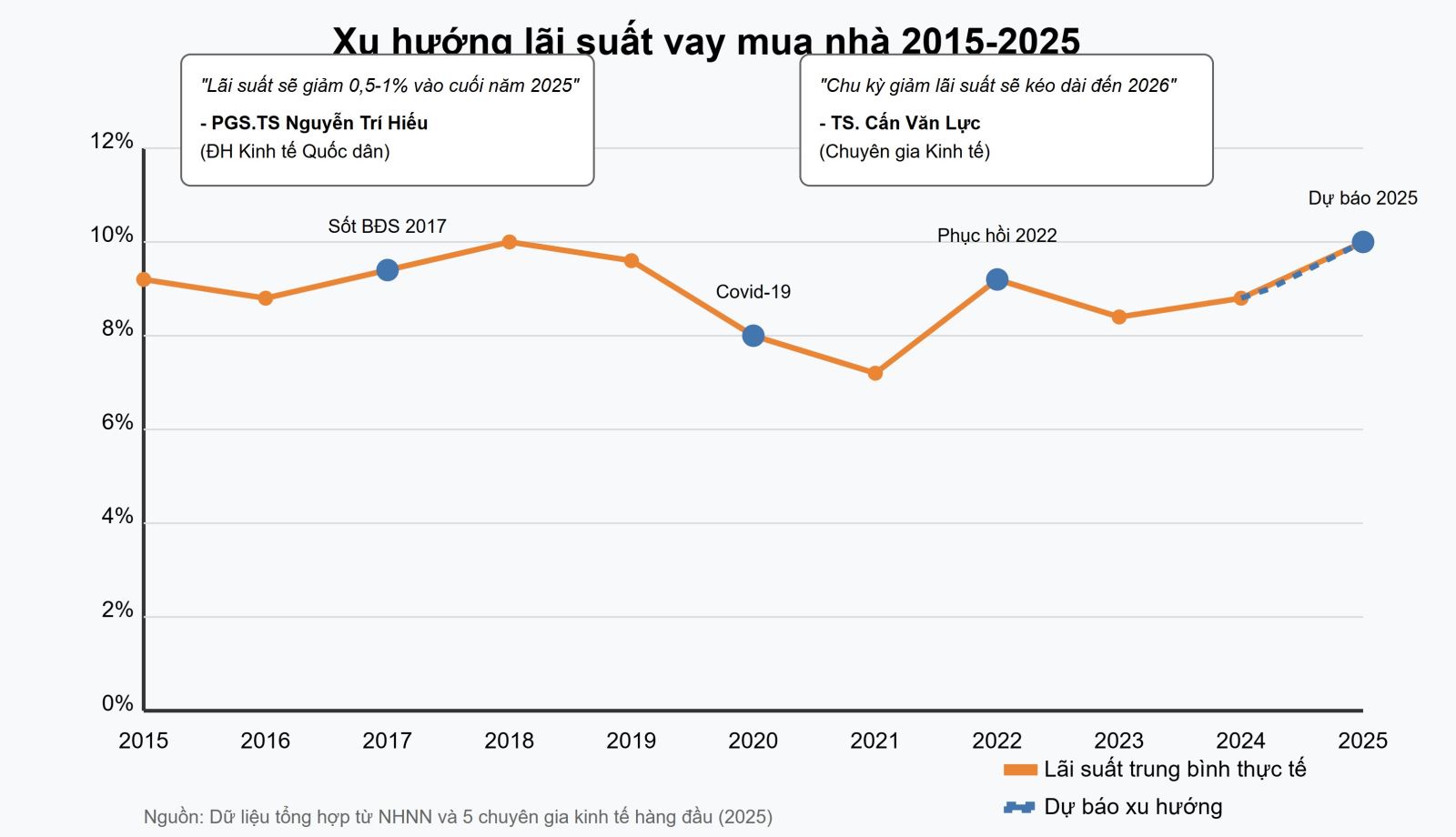 Quan điểm từ hai chuyên gia kinh tế hàng đầu (PGS.TS Nguyễn Trí Hiếu và TS. Cấn Văn Lực) đều thống nhất về xu hướng giảm, tạo điều kiện thuận lợi cho người có nhu cầu vay mua nhà trong những tháng cuối năm 2025.