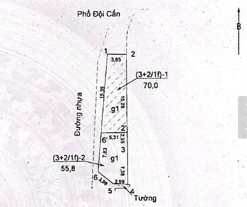 Hiện trạng nhà 2 sổ đỏ, khách mua chủ gộp sổ (Diện tích trên sổ 126m2, xây dựng thực tế tầng 1 138m2, tầng 2 đua ra đua ra 156m2).