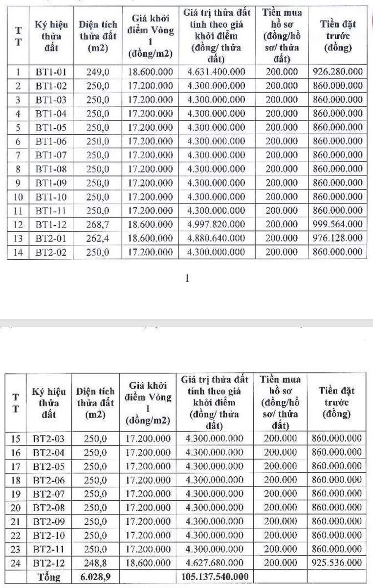 Thông báo đấu giá quyền sử dụng đất ở đối với 24 thửa đất khu BT02 thị trấn Vân Đình, huyện Ứng Hòa, thành phố Hà Nội
