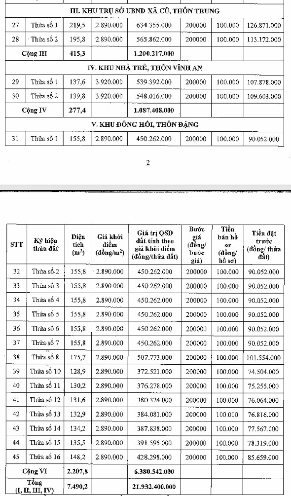 Xem chi tiết theo thông báo mời đấu giá