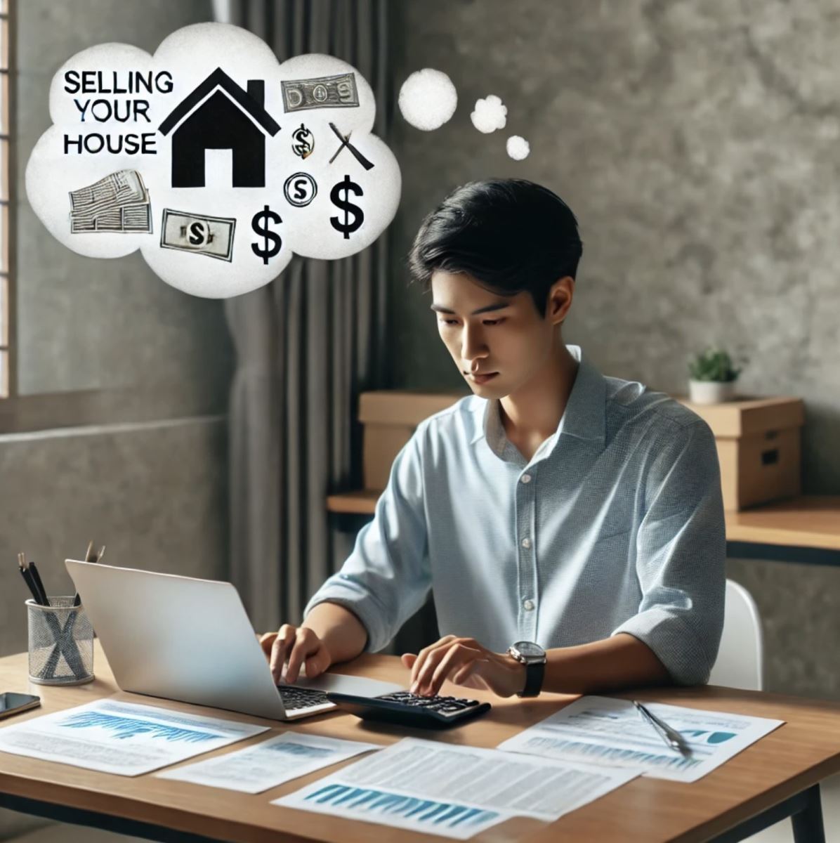 Hình ảnh minh hoạ một người đang tính toán tiền thuế khi bán căn nhà của mình